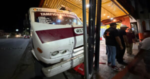La unidad impactó la base de concreto del semáforo, así como una parte de la guarnición del camellón central y el pavimento.
